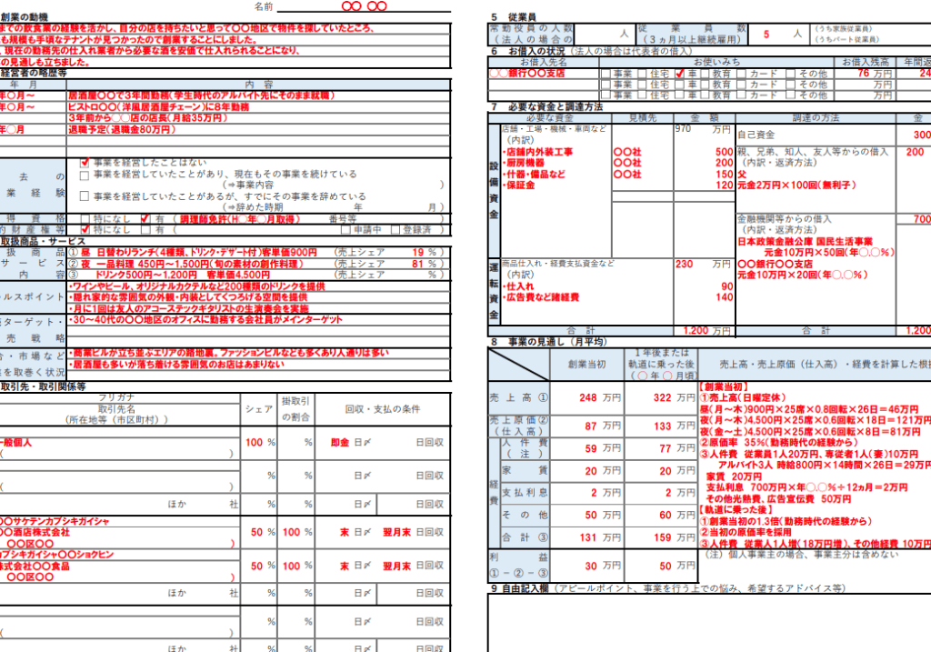 | 財務計画 | 詳細な財務予測 | 最低限の資金計画 |
