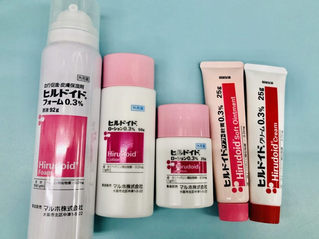 - ヘパリン類似物質油性クリーム: ヘパリン類似物質を含むクリームで、抗炎症作用や血行促進効果がある。